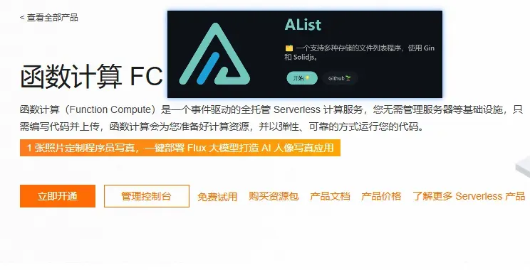 利用阿里云云函数 FC 搭建AList后端,每月仅需5毛!
