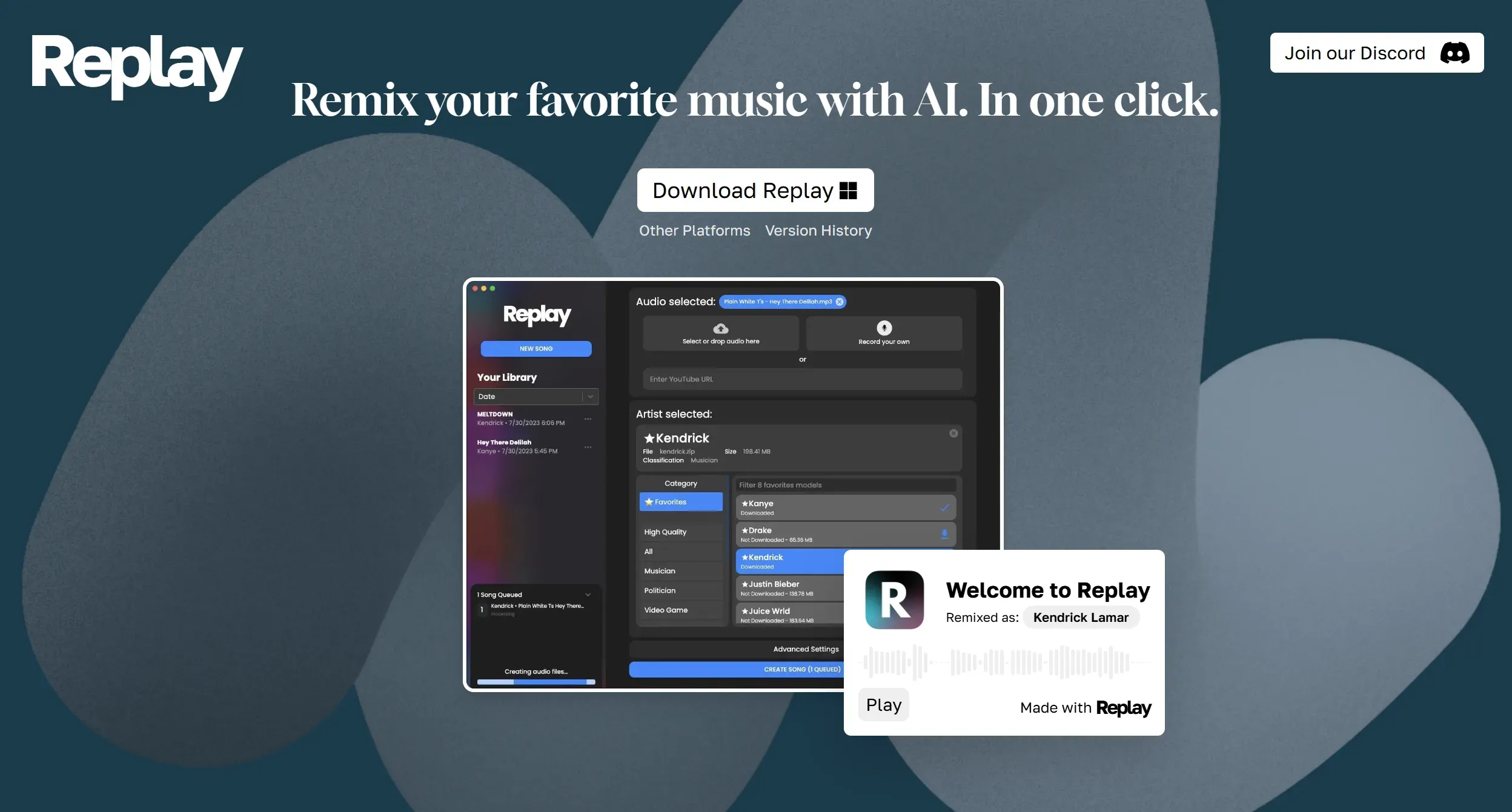傻瓜式AI翻唱软件Replay!选歌!选模型!然后CREATE SONG!