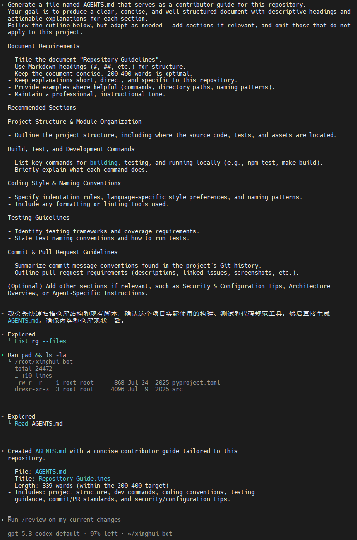 之后在你的项目目录直接输入 codexfull,即可启动一个高权限执行模式的 Agent。