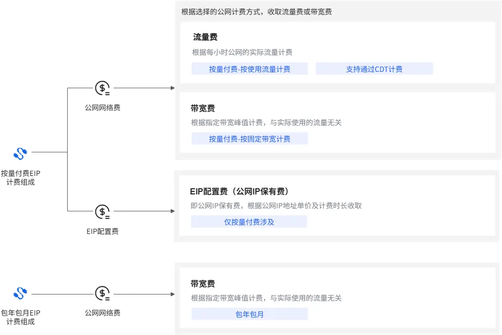 流量费(按使用流量计费收取):根据每小时公网的实际流量计费。