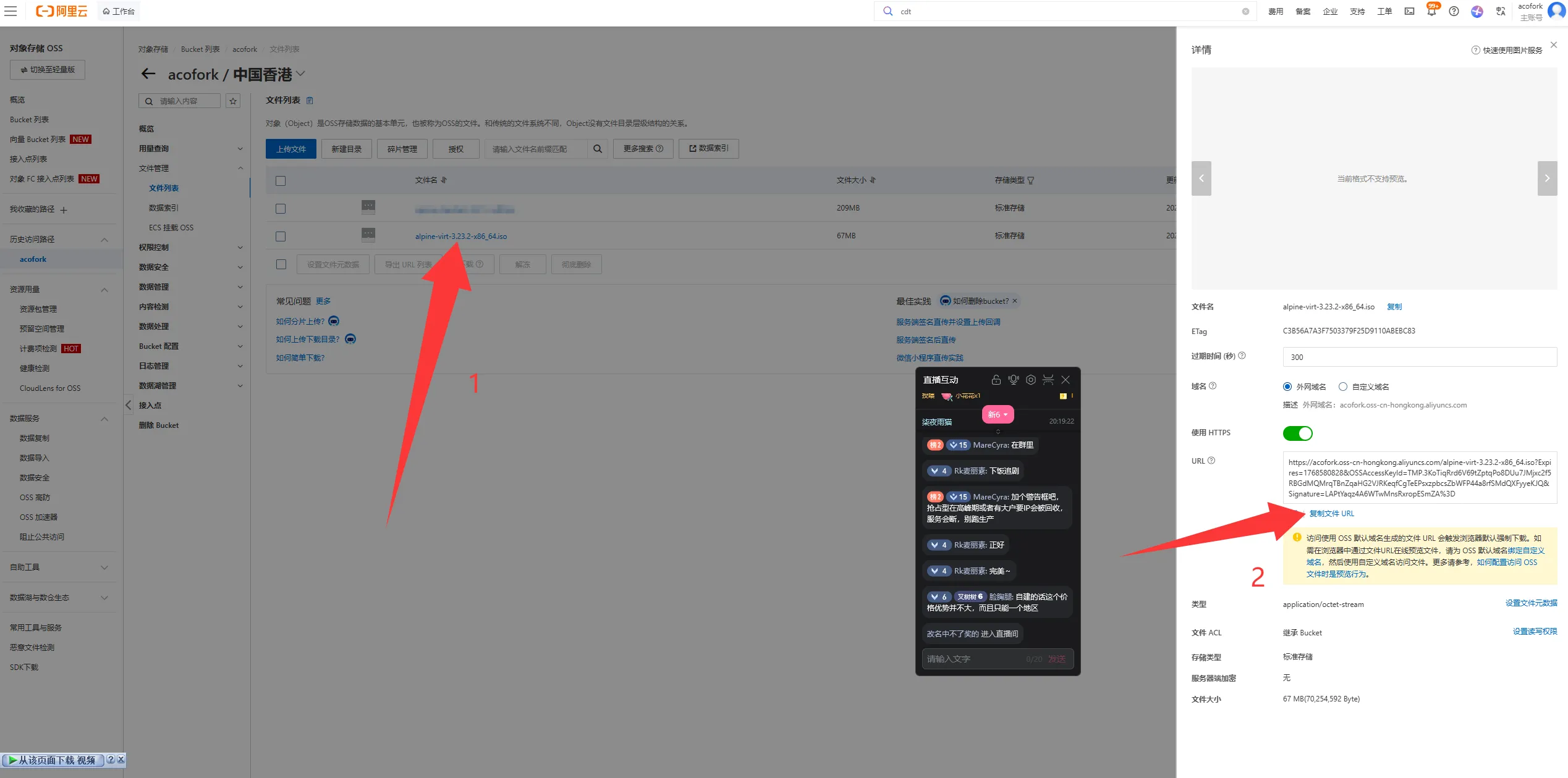 首先,来到 OSS管理控制台 ,创建一个 Bucket,地域一定要选中国香港 ,并且上传ISO,最后,复制URL备用