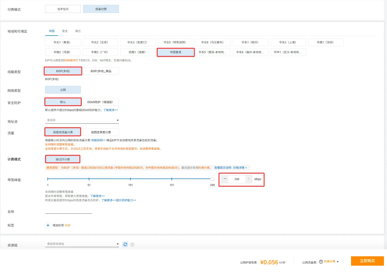 另外,对于 网络及可用区 ,香港一共有 B、C、D 三个区,D区比B、C区贵不少,可以都开开测个速,留下最好的