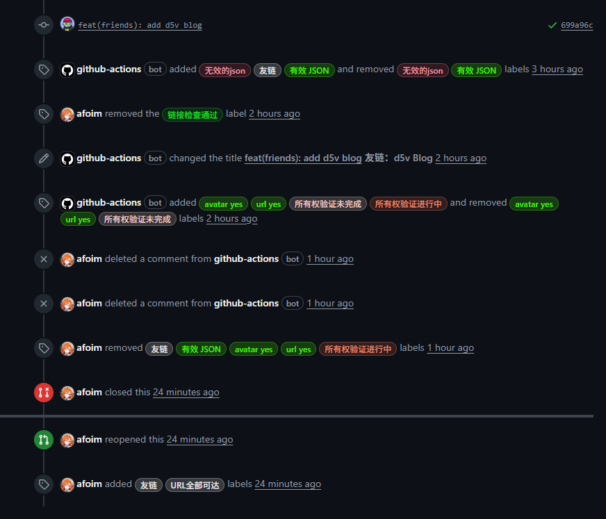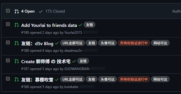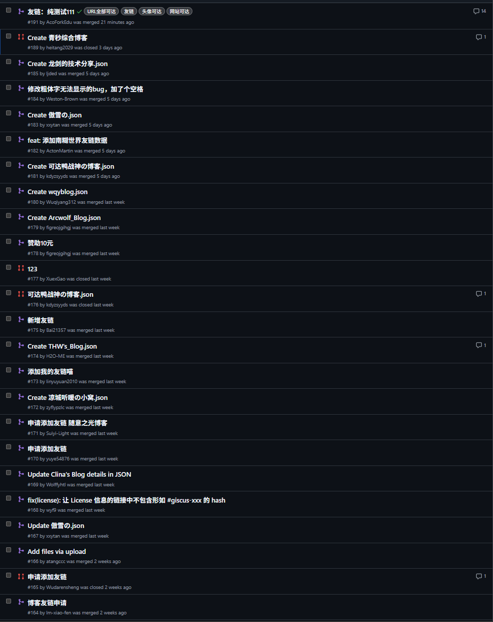 正如很多站长都会遇到的那样,如果你通过 PR 来处理友链申请,尤其是在完全没有自动化的情况下,大概率会遇到下面这种场面: