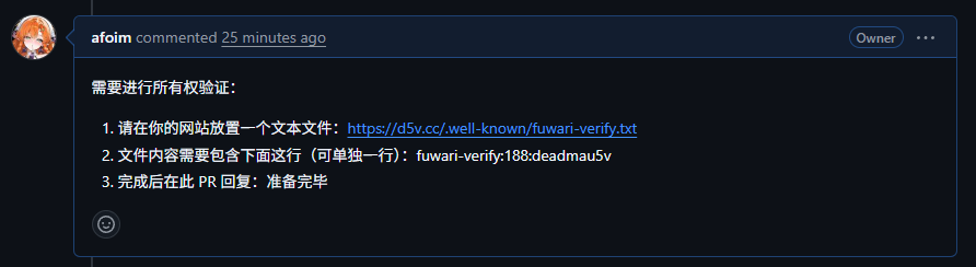 只要打上 所有权验证进行中 这个标签,Action 就会去寻找之前已经创建好的验证文件,而不是重新生成一个新的。