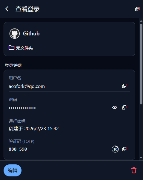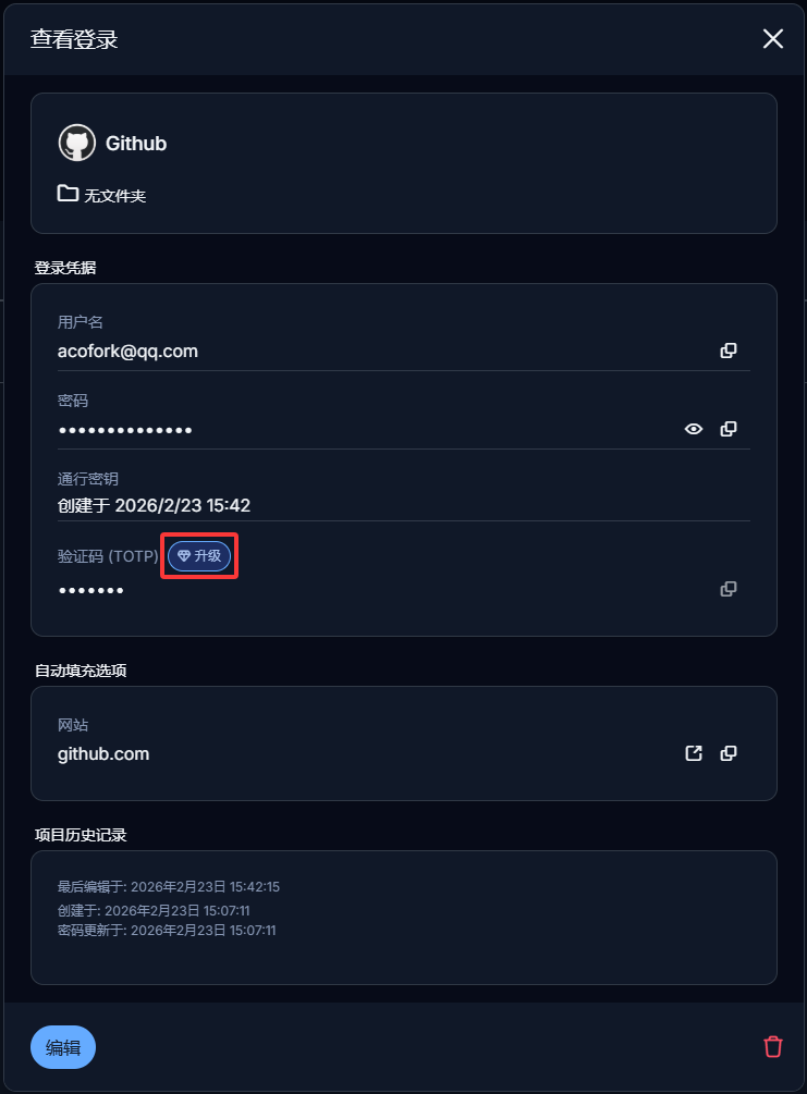 此时,登录你的Bitwarden账号,即可绕过免费版限制,使用TOTP自动填充