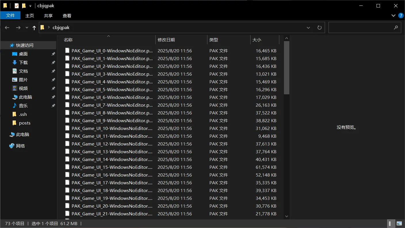 这里列出了所有的PAK文件,由于我们只需要CG图,故也只需要解包类似 PAK_Game_UI_X-WindowsNoEditor.pak 这样的文件