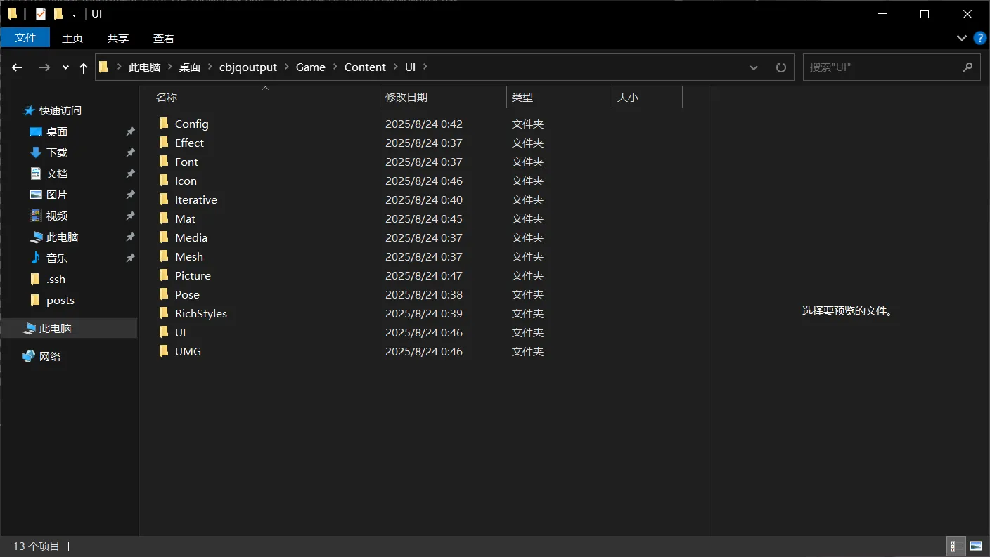 这样就可以在 UE Viewer 里面查看 .uasset 文件了。但是这个文件浏览器很难用,我推荐导出后使用Windows资源管理器查看