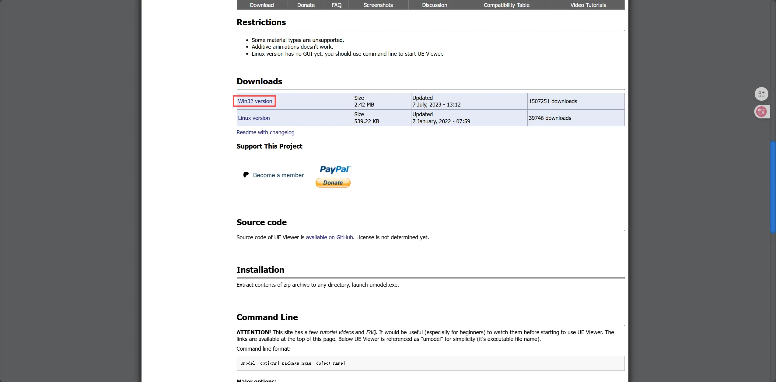 前往 UE Viewer | Gildor's Homepage 。点击 Win32 Version 下载