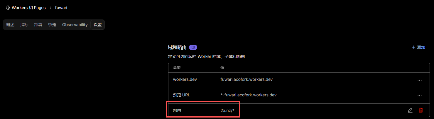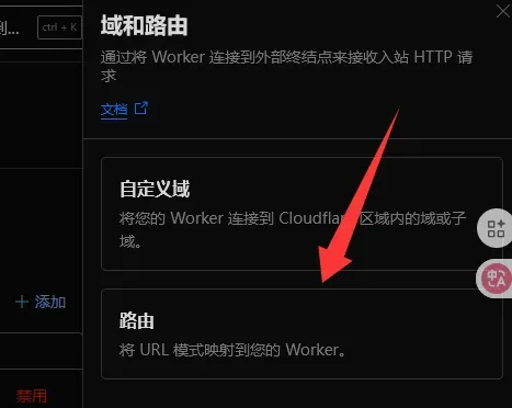 在Workers中添加路由,然后直接将你的路由域名从指向