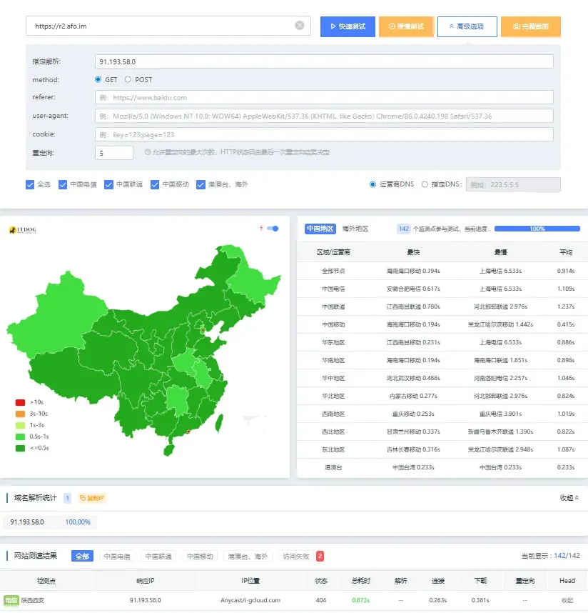 有一些Byoip可能会强制跳转到它自己的网站。需要查看ITDog的测试日志是否有重定向,别让你的网站成为他人的引流站。
