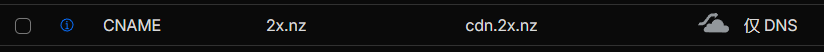 继续在你的辅助域名添加一条解析。CNAME到优选节点:如cloudflare.182682.xyz,不开启cf代理