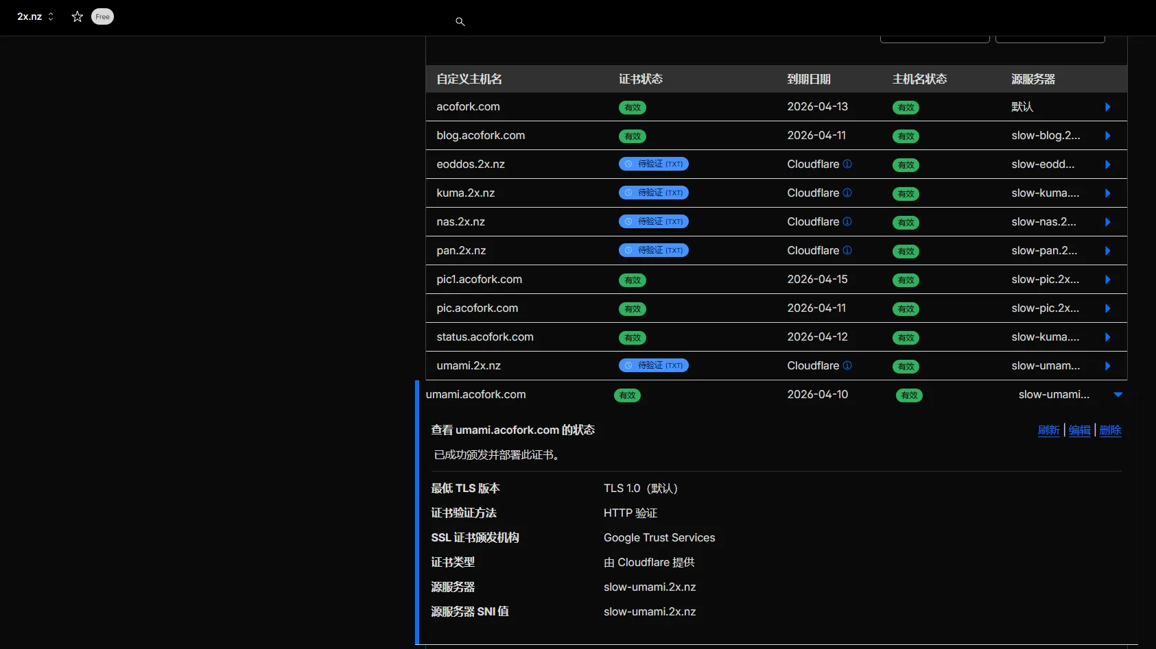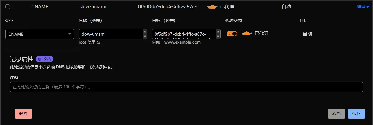 最后写一条 umami.2x.nz CNAME 你自己的优选域名 的DNS记录即可