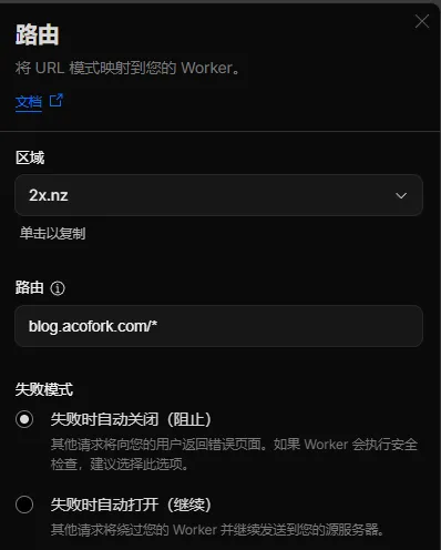 接下来编写Worker路由,直接填写 你的域名+ /*