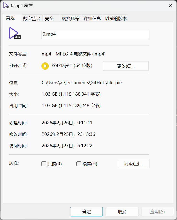 接下来,我就以刚才提到的文章中的视频的源文件举例,可以看到,它是一个AV1编码的MP4,并且有1GB之大