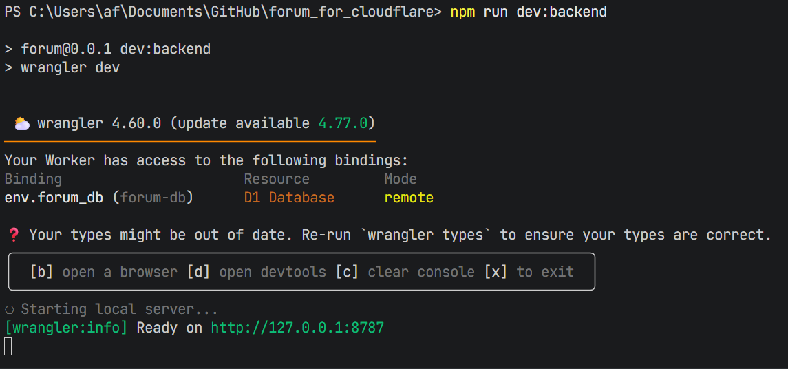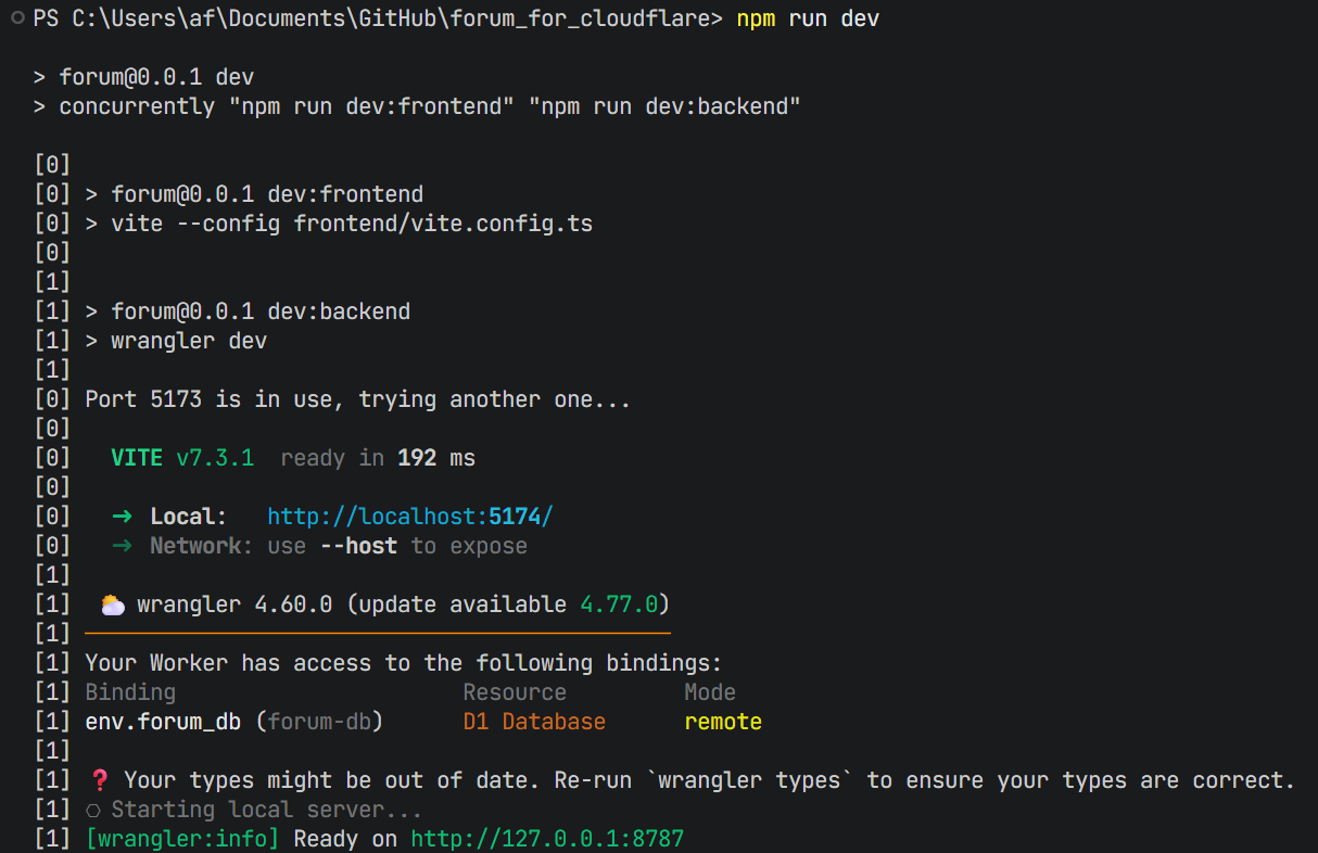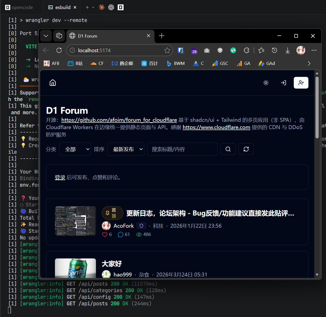 这会导致一个问题,由于最终是 Wrangler 起的 Dev,那么后端自然是可以热重载的了,那么前端呢?