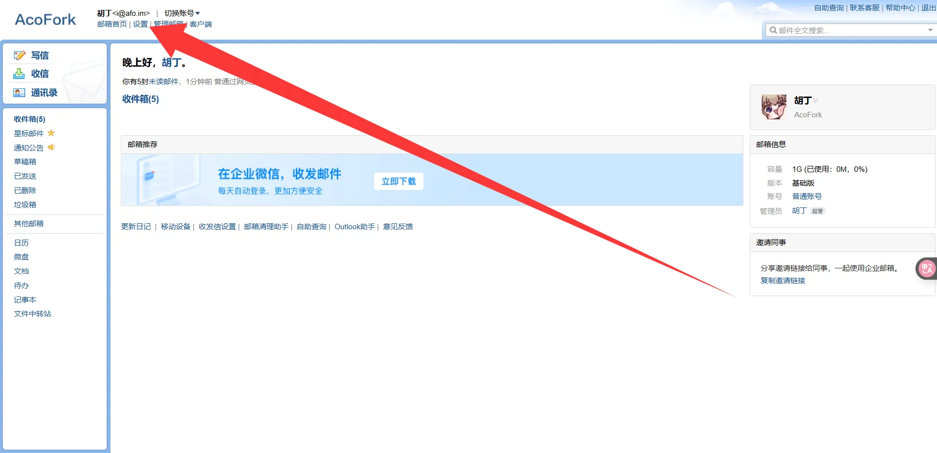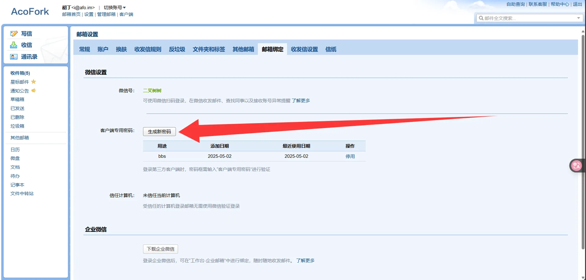 接下来前往邮箱绑定
