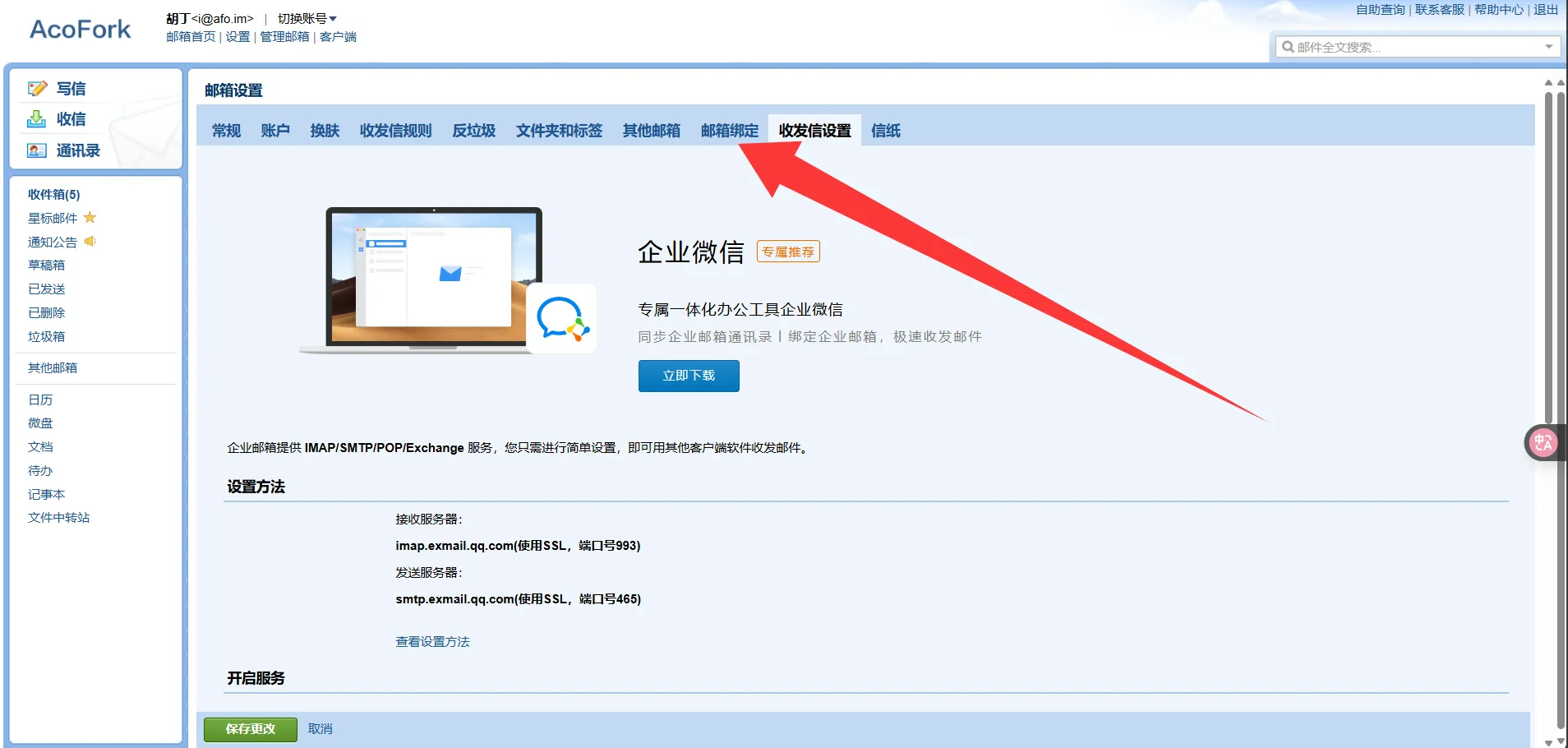 这里就能查看到SMTP和IMAP的地址和端口(实测TLS也是支持的,只是它没写)