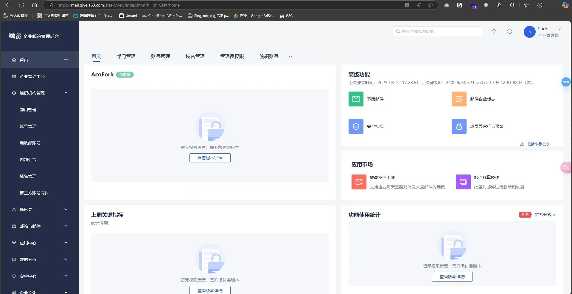 管理员未开启当前登录权限,体验较差,更推荐使用腾讯企业邮箱。