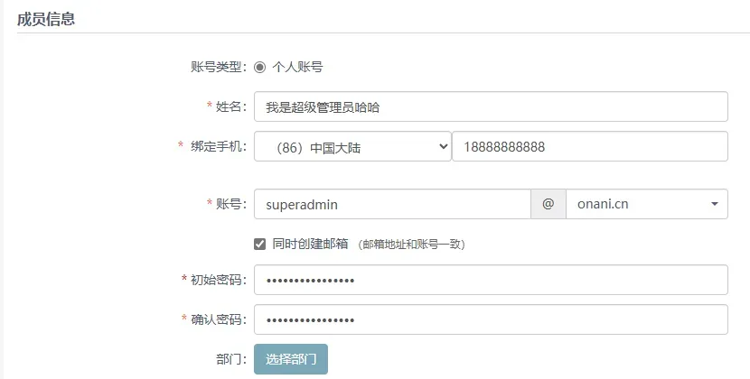 创建账号并配置管理员