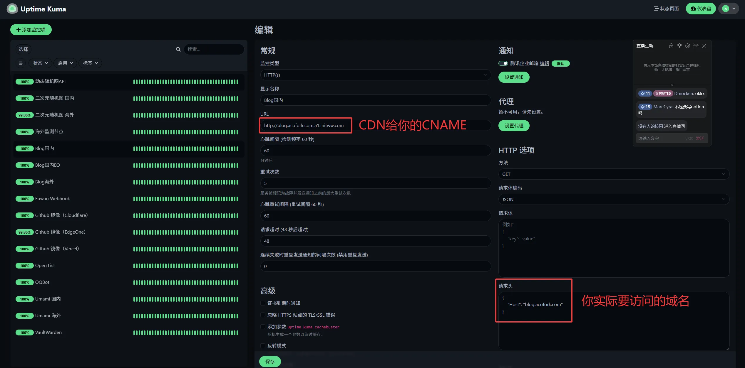 部署一个Uptime Kuma(或者其他服务,监测源必须在国内。因为EO,ESA我们要做拦截海外策略)