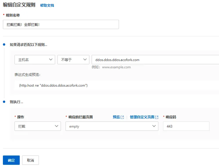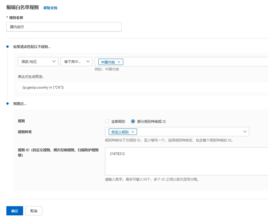 但是有个曲线救国的方案,就是先写个规则将流量全拦截,然后再写个白名单规则,将可信流量绕过该规则。