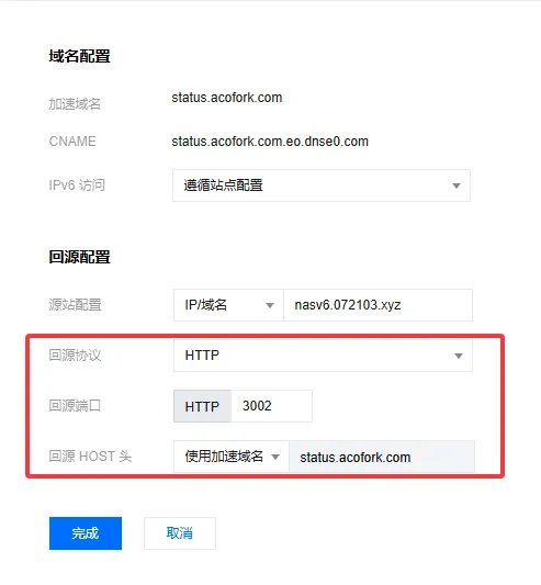 而EdgeOne可以在创建站点的时候直接就设置回源端口以及回源Host。