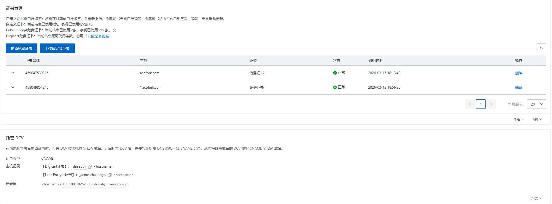 而ESA是统一管理,你给我个DCV,我直接给你签一个泛域名,之后你就用去吧。