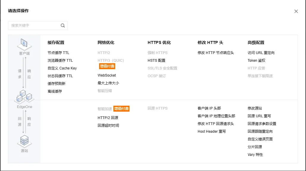 在EdgeOne CDN和EdgeOne Page中,他俩的规则竟然不是互通的,CDN业务走CDN的规则,Page的规则走Page的规则,也行吧,他想做干湿分离,我配两套没问题。