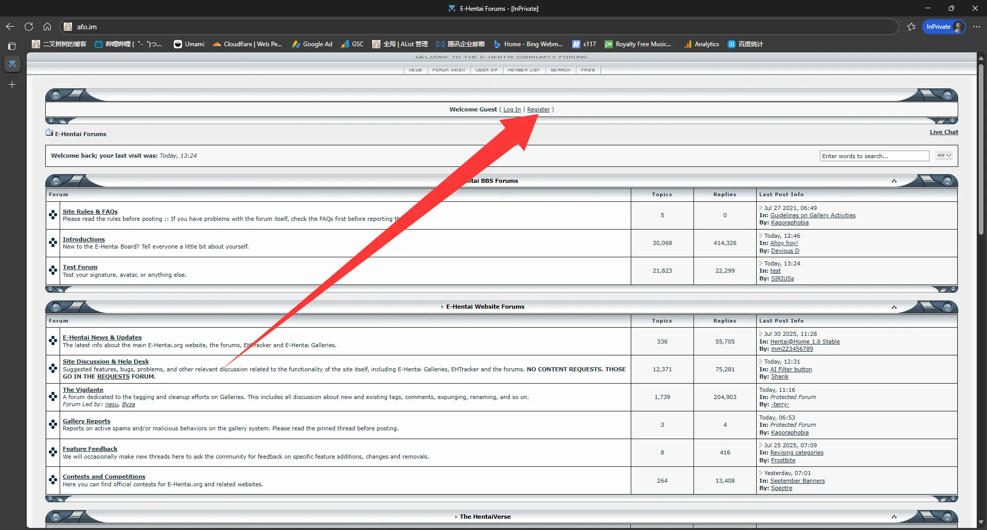 一周之后,使用 浏览器的无痕模式+英语界面 再次进入 E-Hentai Forums 登录