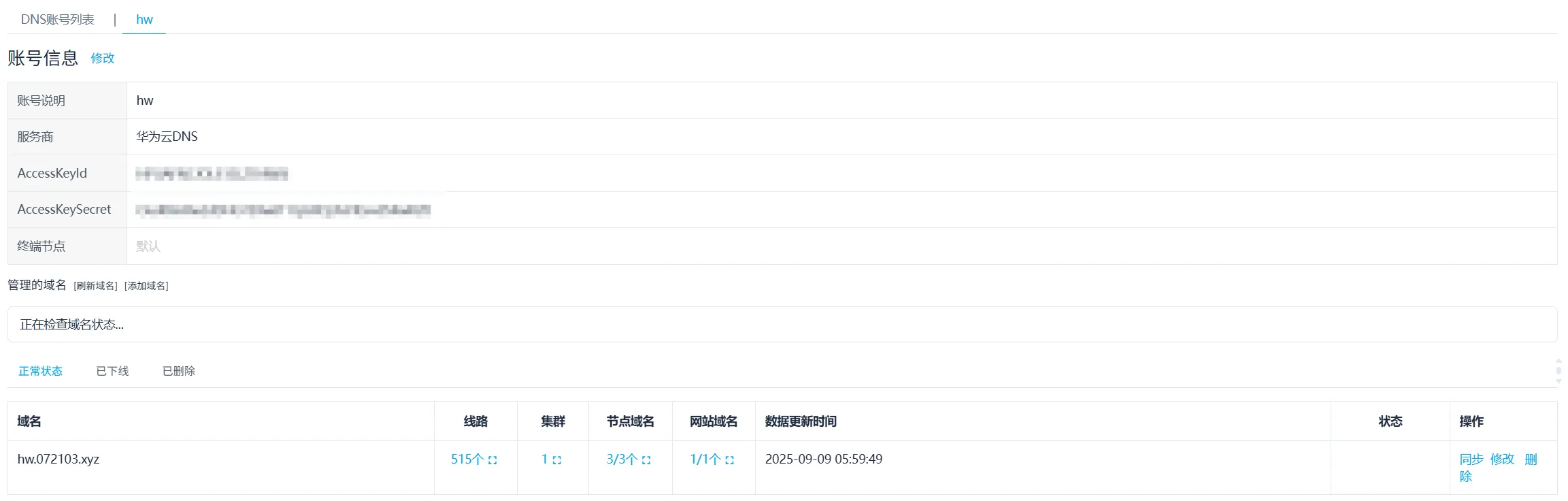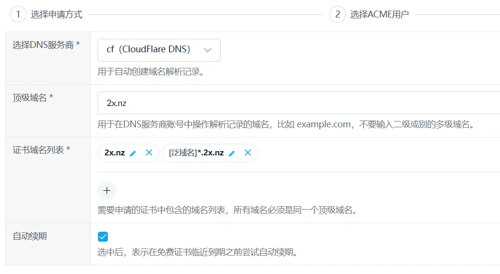 添加你的DNS账号。hw 用来做CDN域名的自治解析,cf 用来后续签发SSL