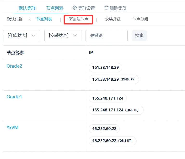 会让你填写每个节点的DNS IP,填写节点的 公网IP 即可