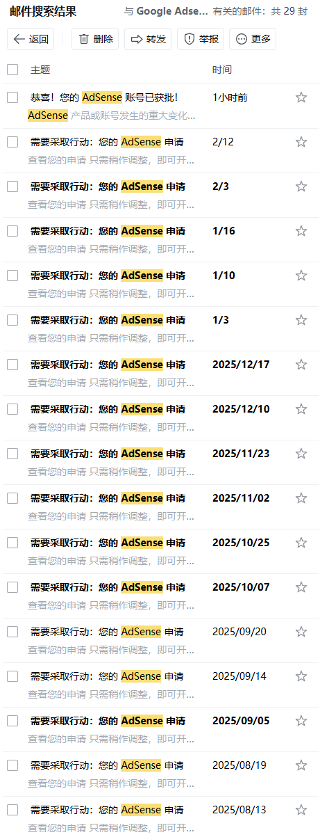 自从25年8月开始(实际上更早),我就开始申请Adsense了。期间一直被拒,直到今天成功通过