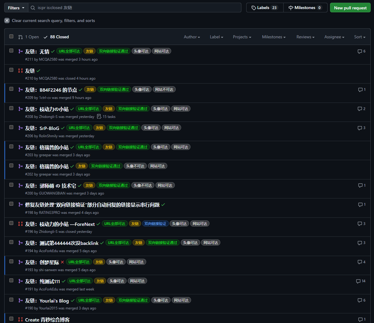 从最初的没有友链,到如今的109条友链