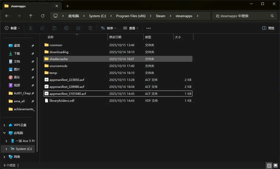 前往 Steam\steamapps 你会发现有很多的 appmanifest_xxx.acf 文件。