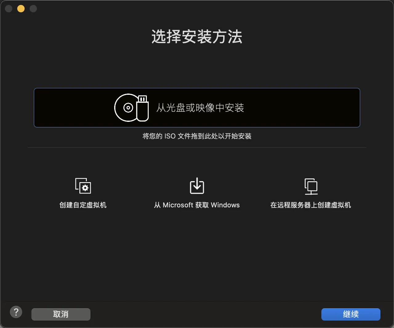 再次打开 VMware Fusion ,新建一个虚拟机,并导入ISO文件,按需调整虚拟机配置即可
