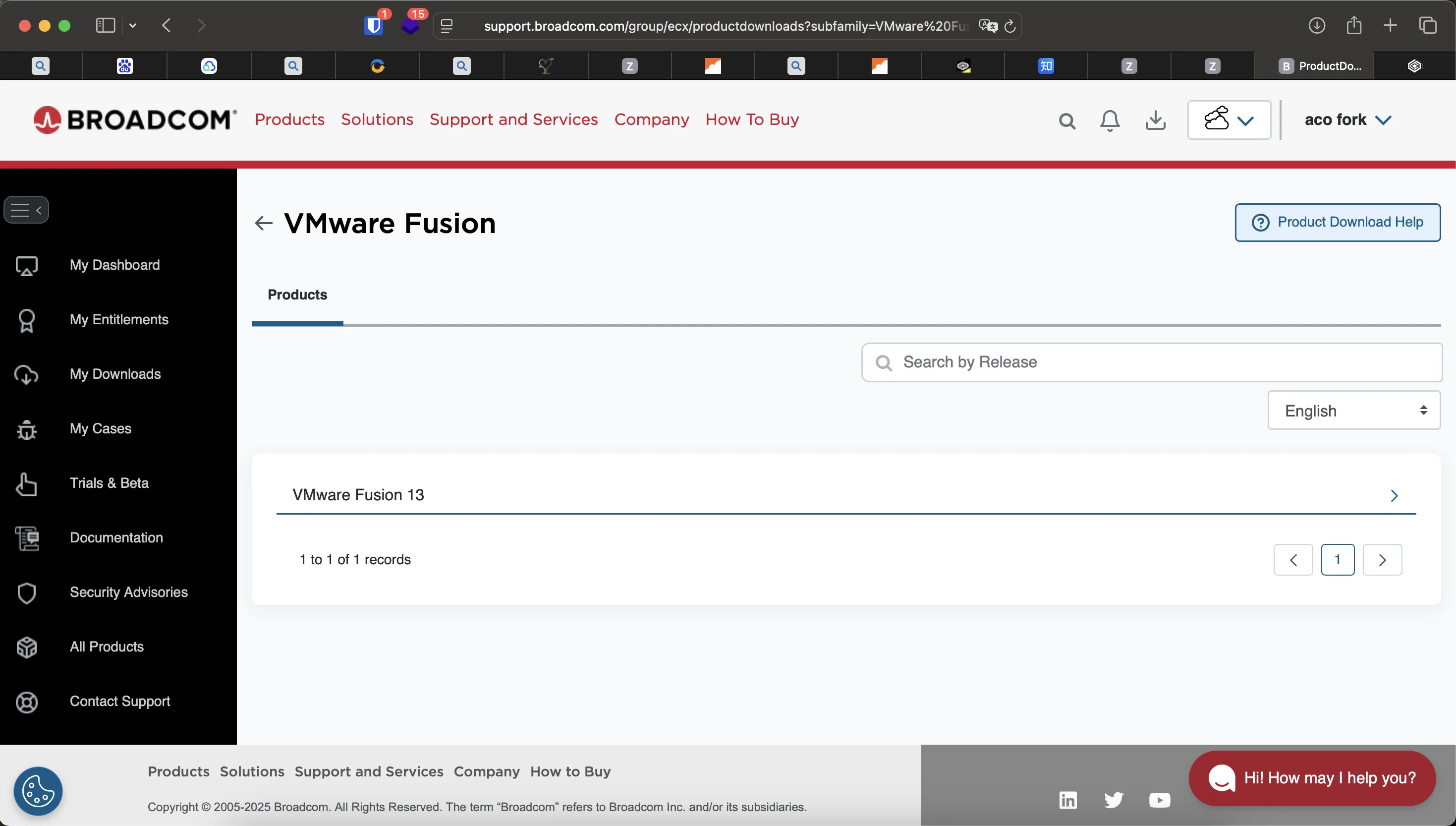 首先,我们下载虚拟机软件 VMware Fusion (需要注册一个博通账号)