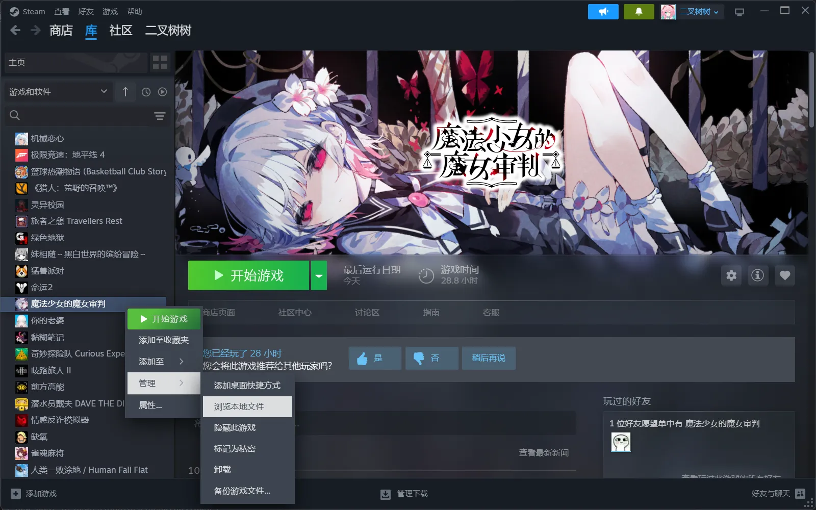 接下来在Steam页面对游戏右键并选择 管理 - 浏览本地文件