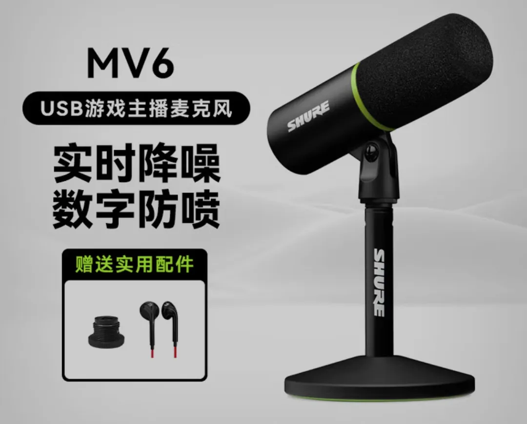 不要想着一支麦克风通吃所有场景。便宜的 USB 桌面麦克风(尤其是带降噪的那类)更适合打游戏时一边动来动去一边和队友聊天;而像舒尔 MV6 这种更偏高端的动圈麦,则更适合做播客、唱歌这类长时间保持固定姿势的场景。真要说“通吃”,Earpods 确实勉强算一个,但线控耳机的收音效果又高度依赖它挂在什么位置,总不能一直贴在嘴边使用。所以归根结底,还是按需求来选最实际。