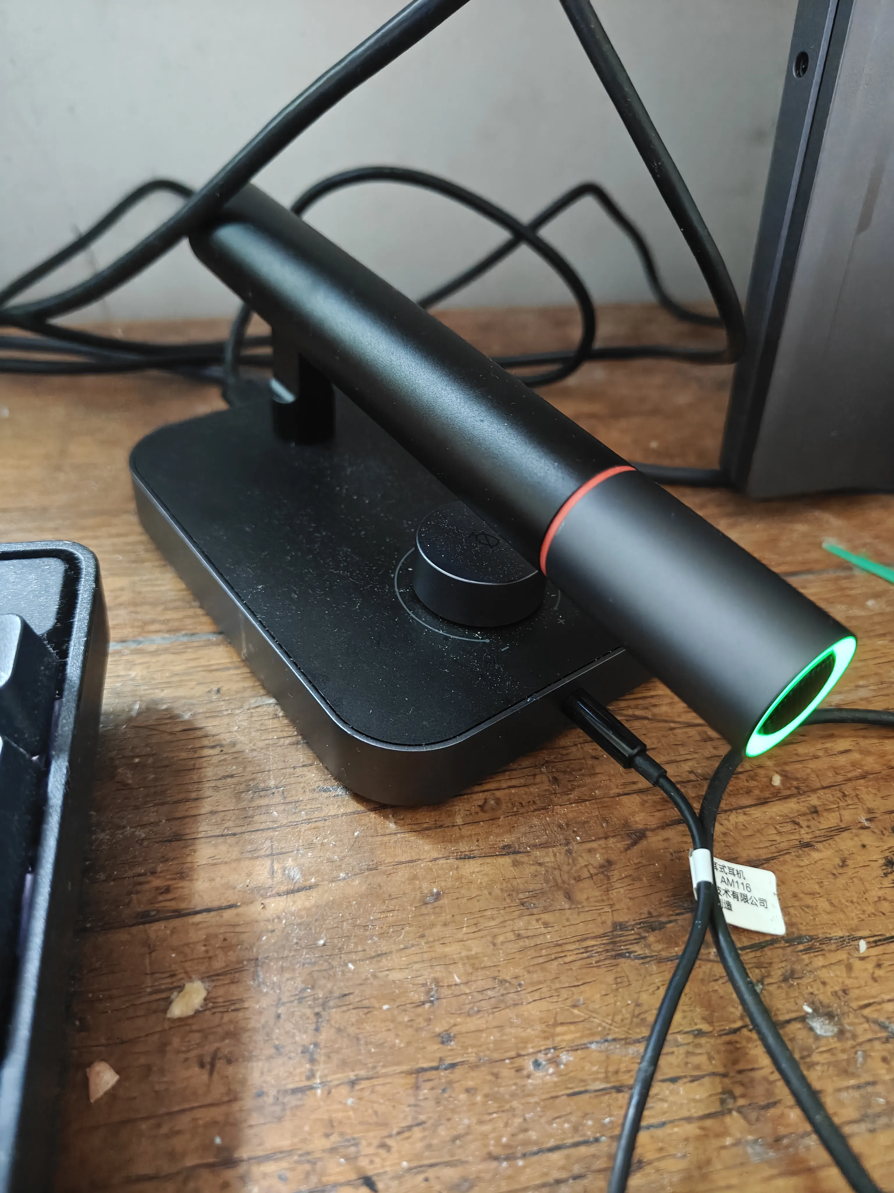 这款麦的缺点在于它使用的是比较老的 Mini USB 接口,而且裸机不附带支架,需要自己额外搭配桌面支架或悬臂支架。