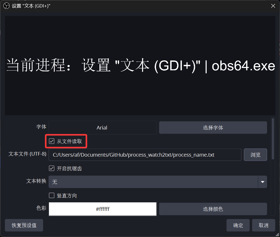 而 OBS 的文字源恰好支持 从文件读取。既然如此,思路就一下子清晰了: