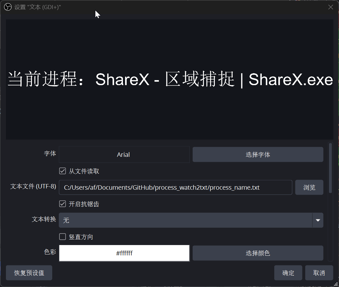 这个思路完全可行。实测下来,OBS 会每隔几秒重新读取一次 TXT 内容。虽然它不是即时 Hook,而是简单轮询,但对于“当前正在使用什么软件”这类信息来说,已经完全够用了。