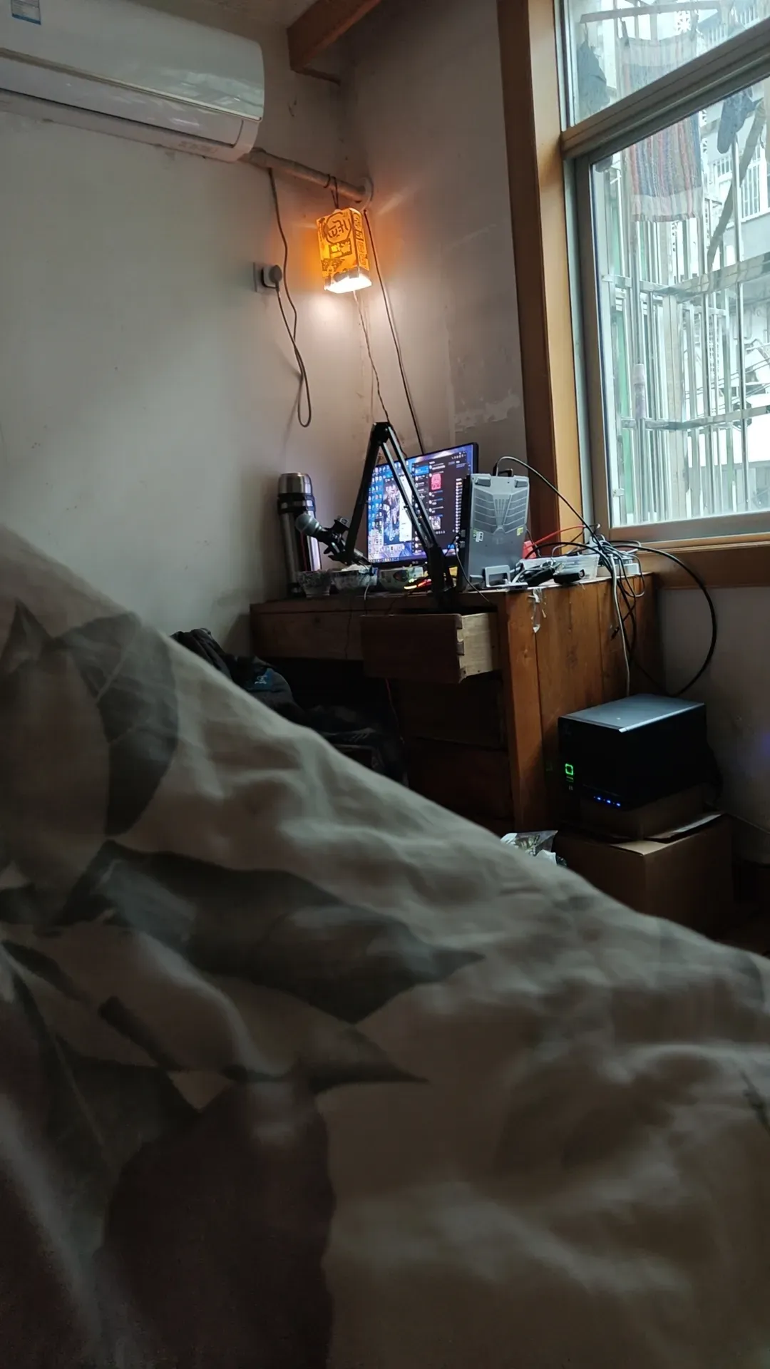 卧室布局整改记录 2025-04-03 起因只是凌晨苏醒的灵机一动,然后... 前言 我的卧室曾经是这样的,如你所见,非常杂乱且布线乱七八糟 契机 今天早上起来我灵机一动,想着要不要整理一下,于是变成了 结束咯~