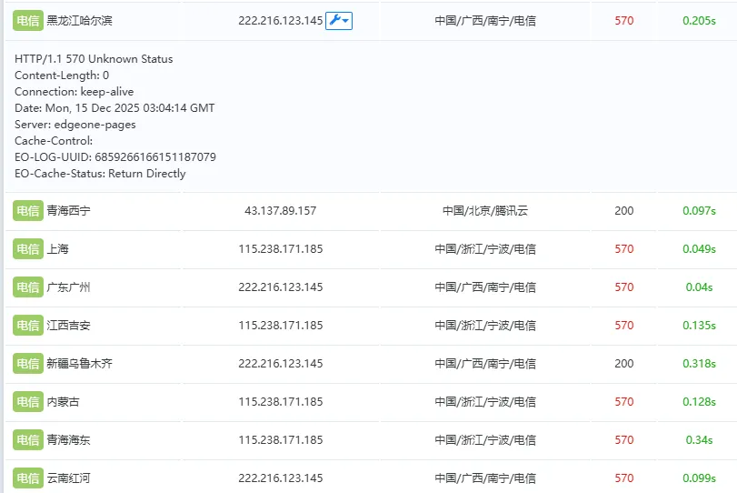 我立即使用 https://itdog.cn 测试了我的博客网站 https://acofork.com 发现大部分节点都为 570 状态码