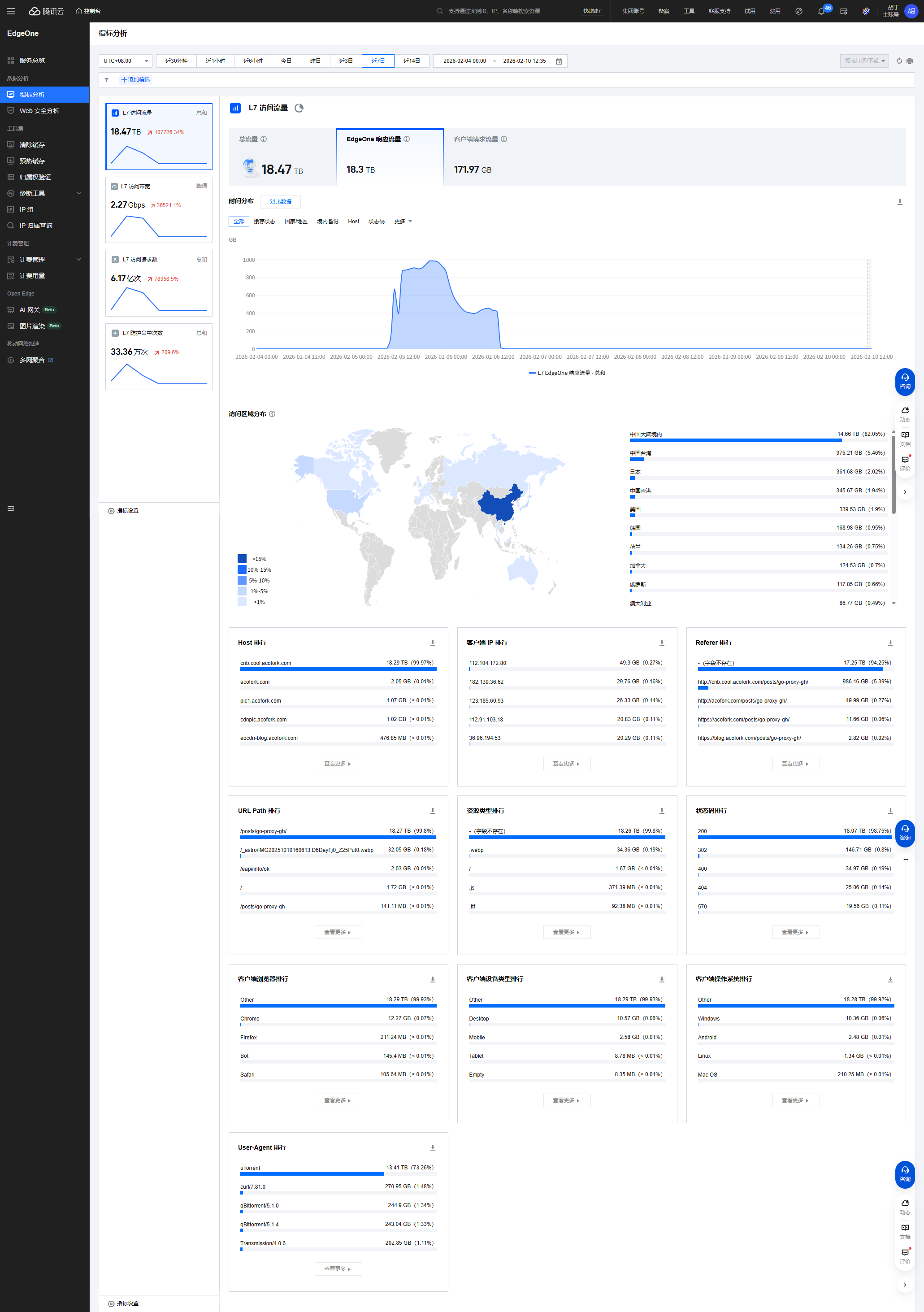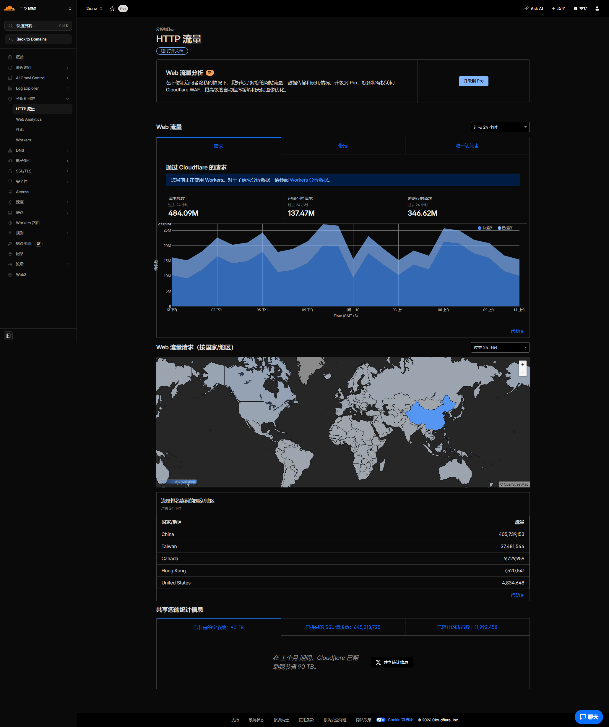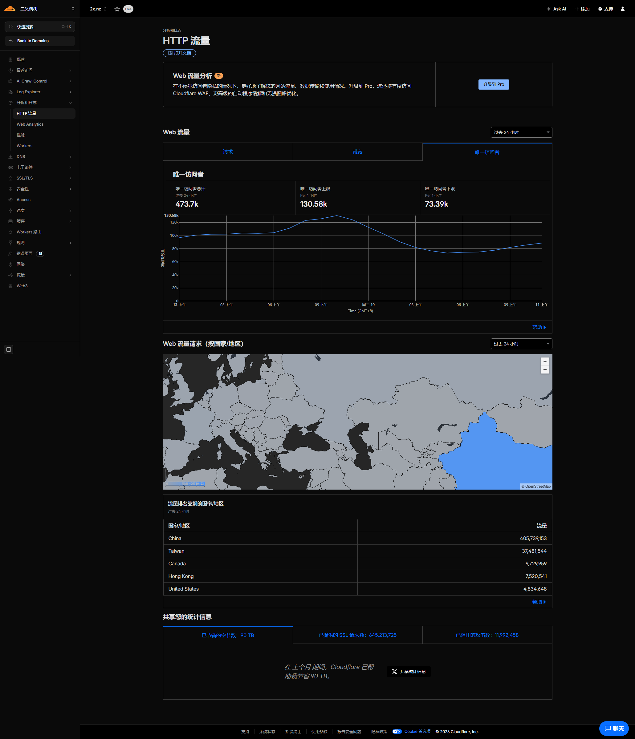 可能玩静态久了,没有第一时间上到 EdgeOne 查看请求数和流量,想着都是静态,谁没事打呢