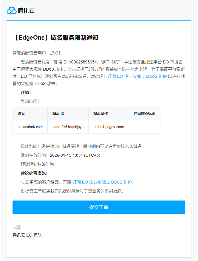 的确,打静态网站 = 打CDN,但由于使用国内CDN,如EO/ESA,众所周知,国内的带宽非常金贵,并且EO/ESA还是免费提供服务的,防护力度自然没有国际大厂Cloudflare强力。通过上文也可知,攻击者的确可以 打死EO/ESA,使其在一段时间无法为你的网站提供服务。另一方面,如果我们不做任何防护措施,CDN平台就可能会认为我们在滥用资源,从而封禁/清退域名,使得我们后续实行补救措施更加困难