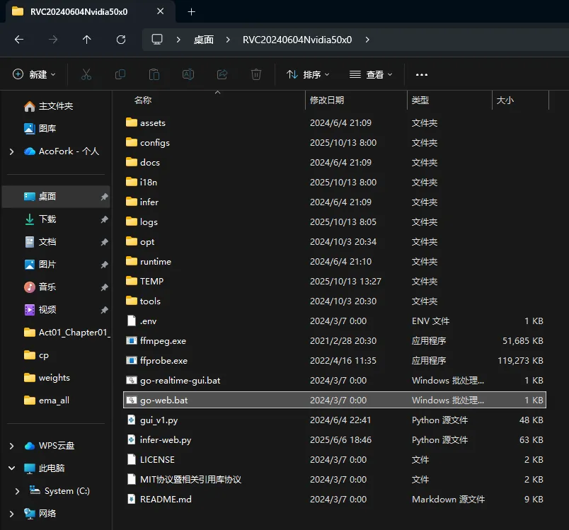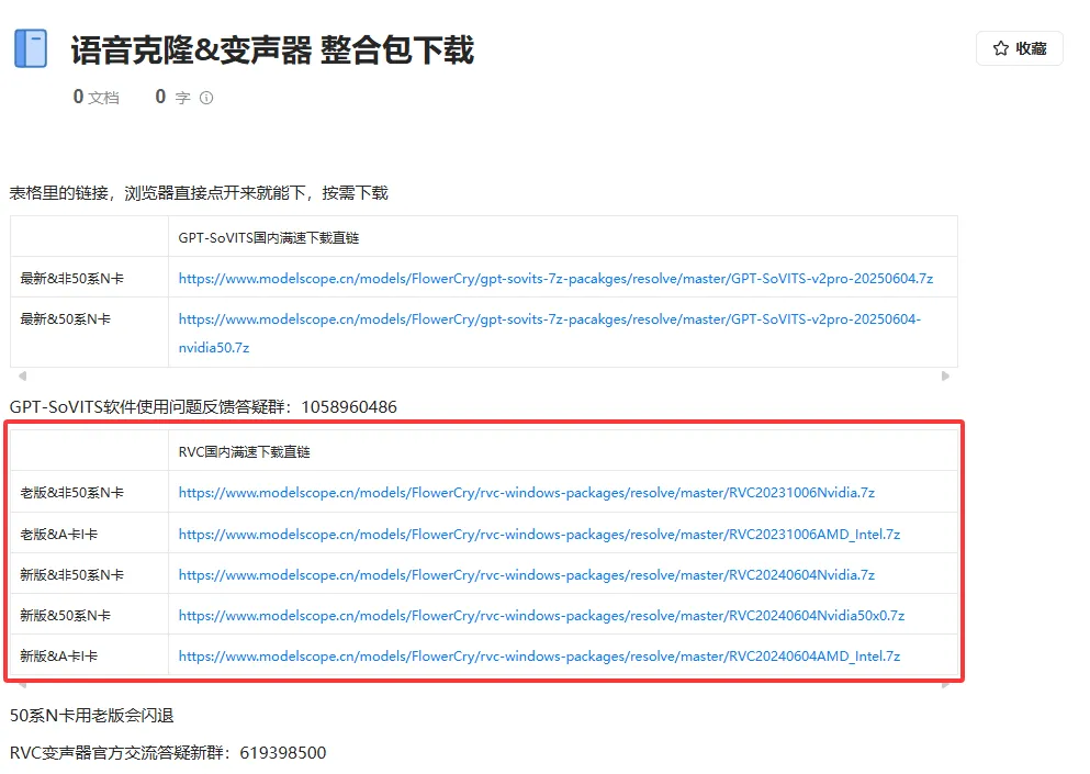 进入 RVC-Project/Retrieval-based-Voice-Conversion-WebUI: Easily train a good VC model with voice data <= 10 mins! 根据你的系统和显卡来进行下载,或者使用该链接下载(国内高速) 语音克隆&变声器 整合包下载 注意不要下错了