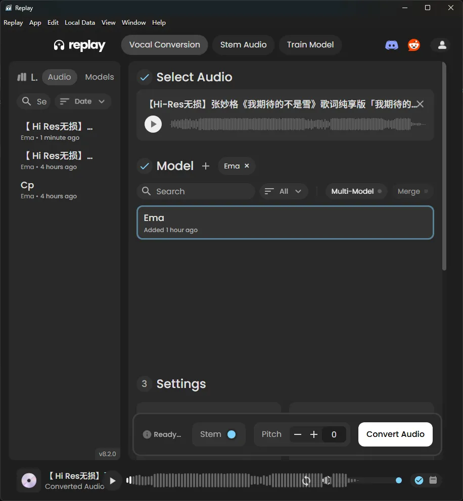 Replay:利用音色模型+原曲进行AI翻唱
