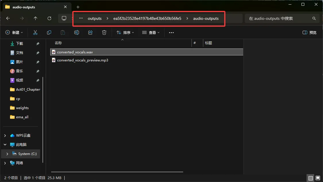 在输出的文件的 View in Folder 可以找到 干净的AI人声