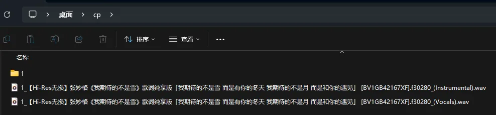 输出文件夹中 Instrumental 为伴奏, Vocals 为人声