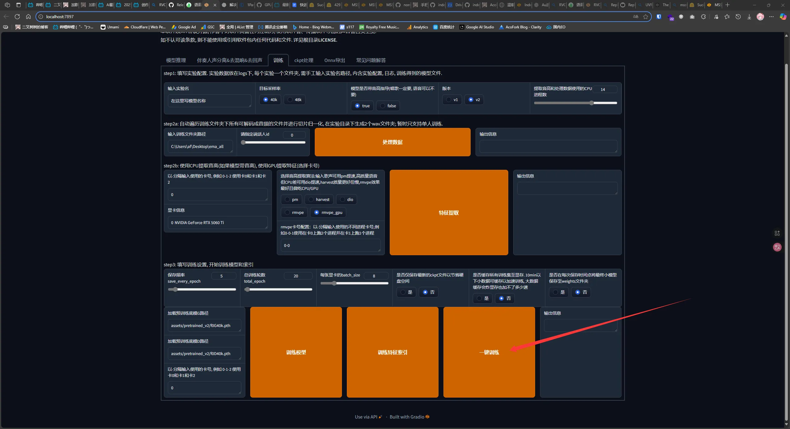 然后点击一键训练(需要很久,建议晚上睡觉前训练)